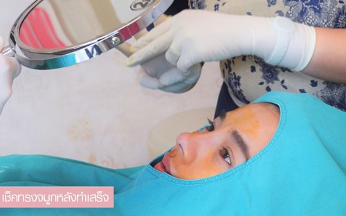หลังร้อยไหมจมูกเสร็จ คุณหมอก็ให้อิ๋วเช็คดูทรงจมูก แล้วก็แนะนำขั้นตอนการดูแลตัวเองหลังทำ ซึ่งไม่ยากเลย มีประมาณ 3 ข้อหลักๆนะคะ