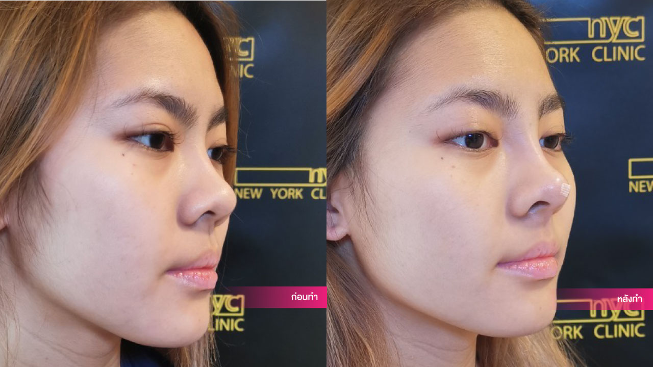 เดิมพอมีเนื้อ สันจมูกจะไม่คมมีคลื่นเล็กน้อย ปีกจมูกกว้างนิดๆ สิ่งที่คุณหมอจะปรับและดีไซน์ให้ใหม่เลย คือทำสันจมูกให้ดูคมขึ้นปรับในเรื่องของการเป็นคลื่นให้เรียบเนียนขึ้น เก็บปีกจมูกและดึงปลายให้ดูโด่งคมชัดขึ้นแบบสายฝ. ก่อนทำคือกังวลมาก กลัวมากๆค่ะต้องขอกำลังใจจากพี่ๆที่ช่วยเข้าเคส ขอให้คุณหมอทำให้เจ็บน้อยที่สุด เจ็บเพียงแค่ตอนฉีดยาชาจริงๆค่ะ คุณหมอจิ๋งมือเบามากคอยบอกตลอดว่ากำลังจะเริ่มทำอะไร และช่วยซัพพอตให้เราคลายกลัวลงได้เยอะเลยค่ะ พอทำเสร็จเห็นตัวเองให้กระจก ยิ้มแบบดีใจมาก ฉันสวยแล้ว คือสวยมากๆเลยค่ะ จมูกได้สายฝ.ตามที่คิด บวมน้อยมากค่ะหลังทำ พูดกับคุณหมอเลยค่ะว่า เลือกไม่ผิดจริงๆที่มาทำกับคุณหมอ