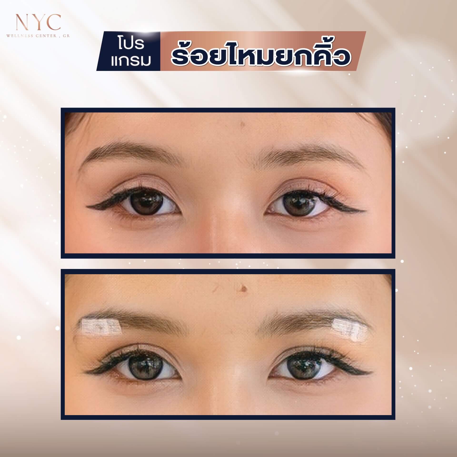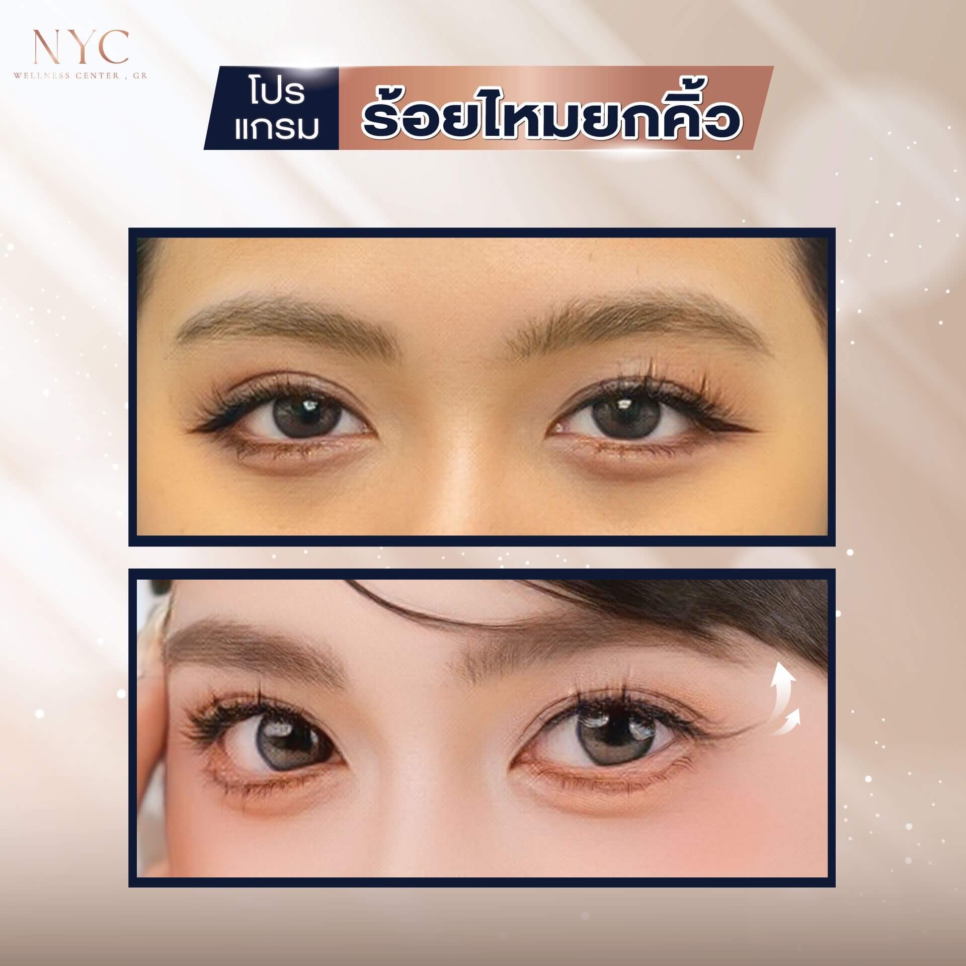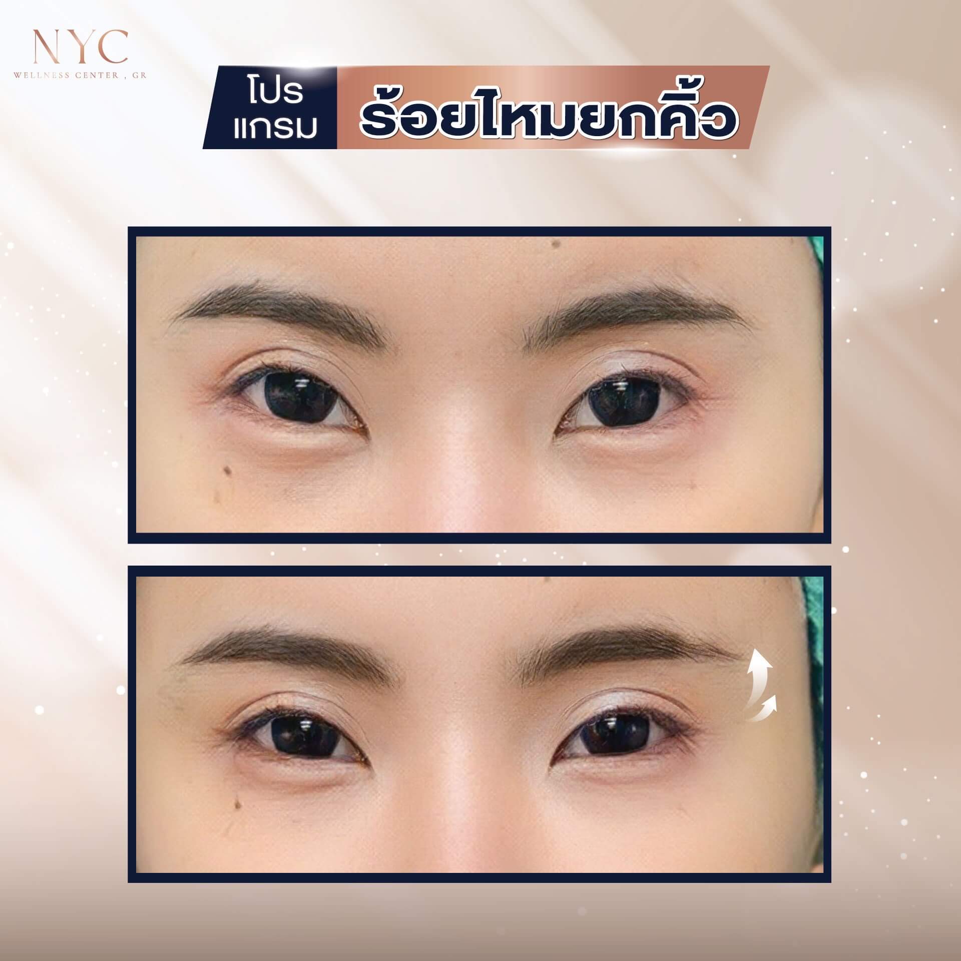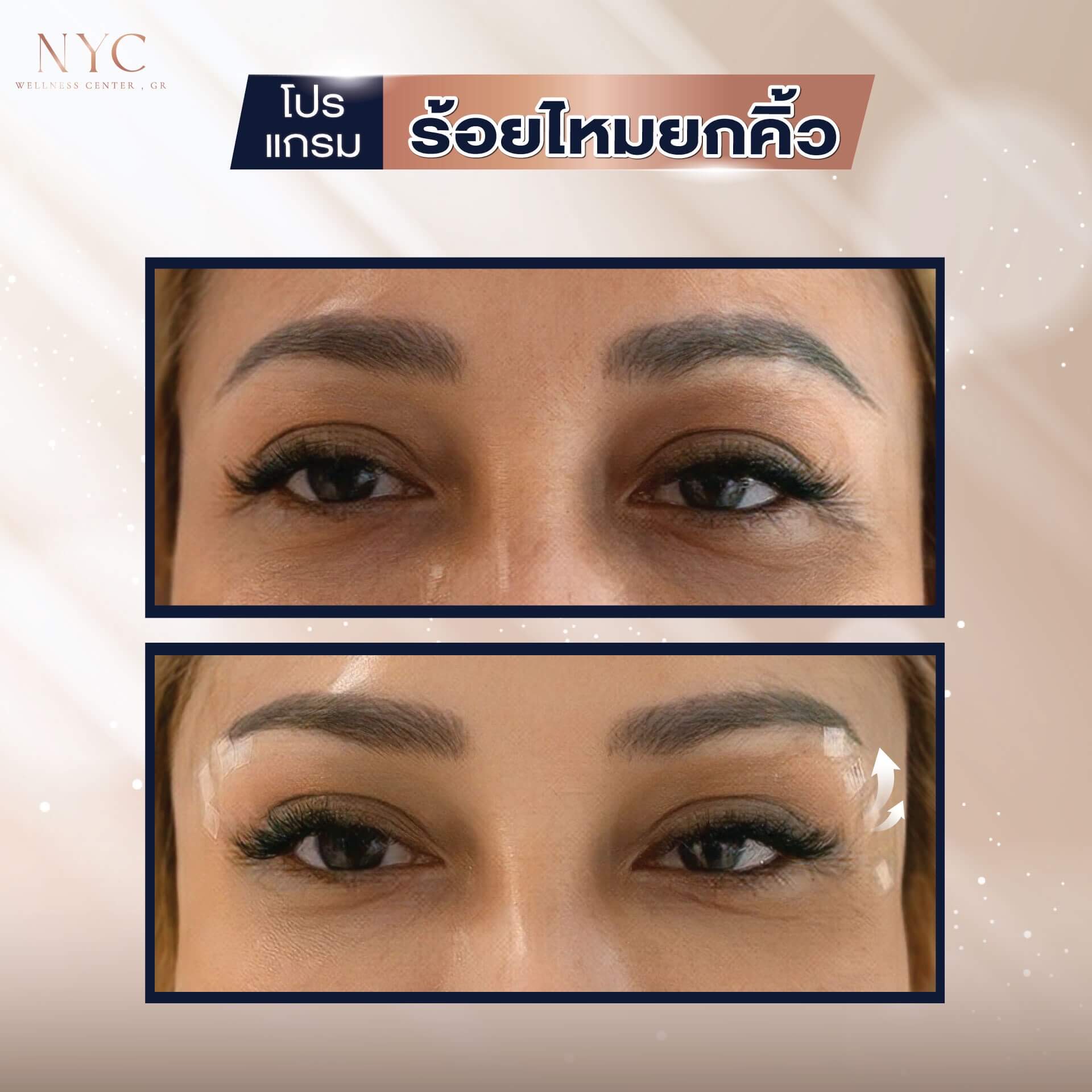 • คิ้วตก: ยกคิ้วให้โค้งสวยขึ้น